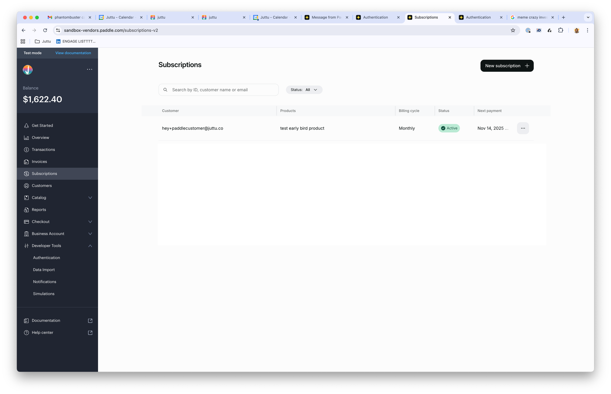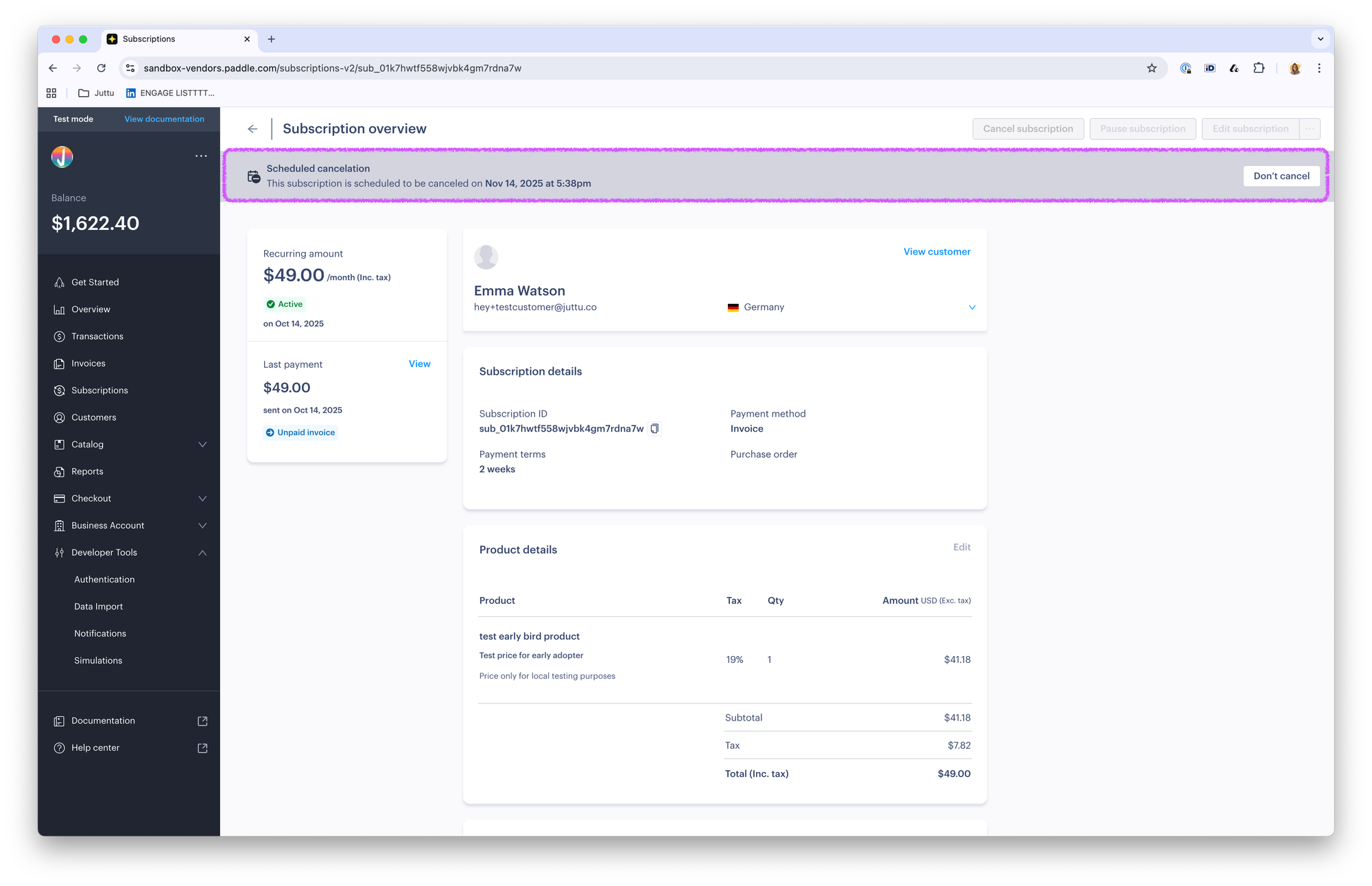 - How to create a test customer and subscription in Paddle